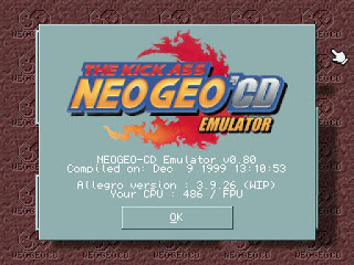 The NeoCD (The KickAss NeoGeo CD Emulator) project was started in August 1999 by Frenchman Fabrice Martinez, and released in October of the same year for MS-DOS, with a second version in November. NeoCD was the first playable Neo Geo CD emulator. It ran several games, such as the Fatal Fury, King of Fighters (up to 98), Metal Slug, Real Bout, Samurai Showdown, Super Sidekicks, Art of Fighting, and other franchises. To run The King of Fighters 99, which had been released almost six months earlier, Fabrice released a package to add to the emulator to accomplish this feat in December 1999. The emulator supported screensaves (also known as screenshots or snapshots), joypads, and cheats (and was compatible with the NeoRage emulator's GameGenie). It used emulators of Mike Coates and Darren Olafson's M68K processors and Neil Bradley's Z80 processor, and ran on a 200Mhz processor with 16 MB of RAM.